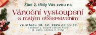 Před 11 měsíciVánoční vystoupení - 18. 12. od 11:00Žáci 2. třídy Vás srdečně zvou do své třídy na VÁNOČNÍ VYSTOUPENÍ, které si pro Vás připravili s paní učitelkou Blankou Dietlovou. Můžete se těšit na krásné vánoční a zimní básničky i písničky a chybět nebude ani malé pohoštění, aby se Vám u nich líbilo ještě víc. Přijďte si zpříjemnit den a udělat radost sobě i jim :-) Ve středu 18. prosince od 11:00 v učebně 2. třídy - v budově 1. stupně ZŠ (první budova), 1. patro