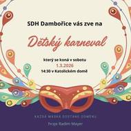 SDH Vás zve na Dětský karneval, který se koná v sobotu 1.3.2026 ve 14:30 v KD v Dambořicích.