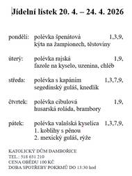 Muži A: Ratíškovice B - Dambořice A, neděle 19.4.2026, začátek v 16:00 hod., odjezd ve 14:15 hod. os. auty Muži B: Velešovice - Bošovice/Dambořice B, neděle 19.4.2026, začátek v 16:00 hod. St. dorost: Veselí/Strážnice - Dambořice, sobota 18.4.2026, začátek ve 12:15 hod., odjezd autobusu v 8:15 hod. Ml. dorost: Veselí/Strážnice - Dambořice, sobota 18.4.2026, začátek v 10:00 hod., odjezd autobusu v 8:15 hod. St. žáci: Slavkov u Brna - Dambořice, sobota 18.4.2026, začátek v 9:00 hod., hřiště Vážany n. L. Ml. žáci: Slavkov u Brna - Dambořice, sobota 18.4.2026, začátek v 11:00 hod., hřiště Vážany n. L. St. přípravka: Kyjov - Dambořice, sobota 18.4.2026, začátek ve 14:00 hod. Ml. přípravka: Ždánice - Dambořice, úterý 21.4.2026, začátek v 16:30 hod.