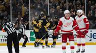 Čeští hokejisté výrazně promluvili do úterního programu NHL. Pavel Zacha dal vítězný gól Bostonu při výhře 3:0 nad Detroitem a David Pastrňák k ní přidal asistenci. Lukáš Dostál dovedl Anaheim k cennému vítězství 3:1 nad Dallasem, čisté konto mu vzali hosté až v 58. minutě. Karel Vejmelka zase pustil jediný gól při jasné výhře Utahu 6:1 nad Torontem a dál sbírá výhry rychleji než kdokoli jiný mezi brankáři.