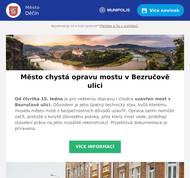 Před 6 dnyPozvánka na zasedání Zastupitelstva města Děčín. Kde: zasedací sál Magistrátu města Děčín - A6, Raisova ul. 1155/3, Děčín IV Kdy: 22. ledna 2026 od 12:00 hodin Budova A6 Bezbarierový přístup budovy A6 Vchod do budovy A6 Magistrát města Děčín v souladu s ustanovením § 93 odst. 1 zákona č. 128/2000 Sb., o obcích (obecní zřízení), v platném znění, informuje o konání 1. zasedání Zastupitelstva města Děčín, svolaného primátorem města panem Ing. Jiřím Andělem, CSc. v souladu s § 92 odst. 1 a § 103 odst. 5 zákona o obcích. Místo konání: zasedací sál Magistrátu města Děčín - A6, Raisova ul. 1155/3, Děčín IV Datum a čas konání: 22. ledna 2026 od 12:00 hodin Předpokládaný začátek bodu Podněty, návrhy, připomínky občanů v 15:30 hodin. V článku budou postupně zveřejňovány materiály zastupitelstva pro veřejnost, přímý přenos, usnesení a videozáznam. Materiály do zastupitelstva jsou zveřejňovány v upravené verzi z důvodu dodržení přiměřenosti rozsahu zveřejňovaných osobních údajů podle obecného nařízení o ochraně osobních údajů.Uzavření mostu v Bezručově ulici