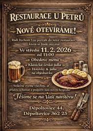 Ve středu 11. února 2026 v 11:00 se nově otevře restaurace v Děpoltovicích. Hosté se mohou těšit na pestrou nabídku klasické české kuchyně, hotovek a jídel na objednávku.