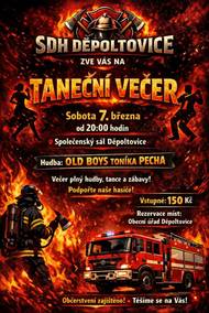 Přijďte si užít večer plný hudby, tance a zábavy ve Společenském sále Děpoltovice. Vystoupí známá hudební skupina OLD BOYS Toníka Pecha. Vstupné je 150 Kč, rezervace míst je možná na úřadě Děpoltovice. Občerstvení bude zajištěno, takže se můžete těšit na příjemnou atmosféru a skvělou zábavu.