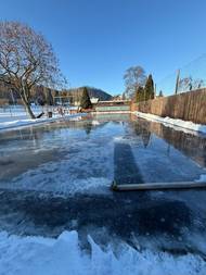 Na dětském hřišti u nádraží dnes začalo bruslení.Děkujeme jednotce JSDH Dobkovice a zaměstancům úřadu za pomoc při přípravě ledové plochy.