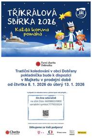Od čtvrtka 8.1.2026 do úterý 13.1.2026 proběhne v Dobřanech tradiční Tříkrálová sbírka. Pokladnička bude k dispozici v Majketu v prodejní době.