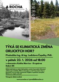 A ROCHA pořádá přednášku na téma Týka se klimatická změna Orlických hor? v pátek 23.1.2026 od 18:00 v ekoncentru Keithe Morrise - Krupárna Dobré 85