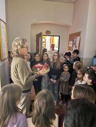S paní učitelkou Anetkou Hirmanovou. Krásně jste nám to tu vyzdobili!