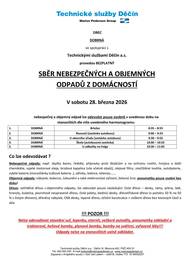 Vážení spoluobčané, dne 28.3.2026 proběhne svoz odpadů z domácností. Tento svoz budeme organizovat pouze jednou ročně, takto na jaře. Občané předávající odpad při tomto svozu MUSÍ osobně odpad předa svozové společnosti, nelze odpad pouze připravit na uvedených místech! Děkuji za pochopení. Starosta obce Dobrná