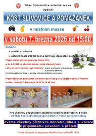 Sběr a svoz nebezpečného odpadu firmou Respono proběhne v naší obci v sobotu 7. března od 9:30 do 10:00 hod. před hasičskou zbrojnicí. Sběr nebezpečného odpadu není určen pro odpad vznikající z podnikatelské činnosti. Obec Dobromilice zve příznivce slivovice a dobrého jídla na tradiční košt slivovice a pomazánek, který se uskuteční v sobotu 7. března od 15:00 v místním muzeu. Vstupné je pro soutěžící zdarma, pro ostatní 200Kč a zahrnuje degustaci a občerstvení. Příjem vzorků slivovice či pálenky v půl litrových lahvích bude probíhat do pátku 6.3. na obecním úřadě v úředních hodinách. Láhve musí být označeny jménem, příjmením , druhem pálenky, rokem výroby a procentem alkoholu. Přihlásit můžete maximálně 2 vzorky na osobu. Příjem domácích pomazánek ve hmotnosti max. 40dkg do soutěže bude v sobotu 7.3. od 14:00 do 14:45hod. Starostka obce Dobromilice svolává veřejné zasedání zastupitelstva obce Dobromilice, které se bude konat ve čtvrtek dne 5. března 2026 v 19.00 hodin v budově obecního úřadu Dobromilice (zasedací místnost). Navřený program je: 1. Zahájení a schválení programu zasedání 2. Schválení zapisovatele a ověřovatelů zápisu 3. Projednání vyhlášeného Záměru č. 2/2026 4. Projednání žádosti spolků o finanční podporu na rok 2026 5. Projednání žádosti o prodloužení termínu doložení kolaudace stavby na pozemcích p.č. st. 240/1 a p.č. 1636 v k.ú. Dobromilice 6. Projednání Směrnice č.1/2026 7. Projednání Záměru obce č. 3/2026 8. Různé 9. Diskuse 10. Závěr