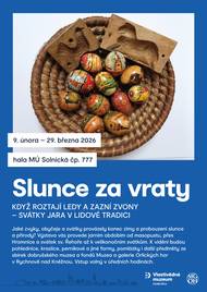 9. února – 29. března 2026 hala MÚ Solnická čp. 777 volný vstup v úředních hodinách Jaké zvyky, obyčeje a svátky provázely konec zimy a probouzení slunce i přírody? Výstava Slunce za vraty vás zavede do jarního období tak, jak jej po staletí prožívaly generace před námi.