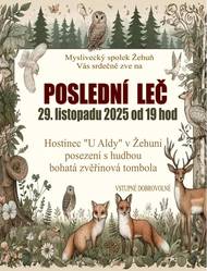 MS Žehuň Vás srdečně zve na tradiční Poslední leč, která se koná 29.11.2025 v hostinci U Aldy od 19 hodin. Čeká na Vás příjemné posezení s hudbou a bohatá zvěřinová tombola.