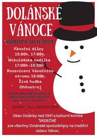 30.11.2024 od 15.00 hodin.,PROGRAM:• 15.00-17.00 Vánoční dílny,• 17.00-18.00 Mikulášská nadílka Ohňostroj, živá hudba, koledy. Nebude chybět svařák, čaj a občerstvení. Přijďte s námi přivítat adventní čas a užít si vánoční atmosféru.