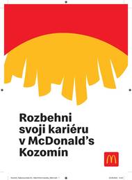 Nabídka pracovních míst pro McDonald’s. Místo - Retail park Kozomín u Exitu9 na D8 Kontakt: +420 725 905 831 dominik.knezour@cz.mcd.com