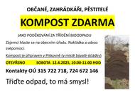 Kompost zdarma jako poděkování za třídění bioodpadu KOMPOST K VYZVEDNUTÍ V SOBOTU 12.4., 10:-11:HOD, V PÍSKOVNĚ ( V MÍSTĚ BÝVALÉ SKLÁDKY)