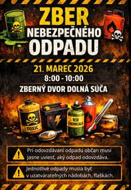Vážení občania, oznamujeme Vám, že dňa 21.3.2026 sa bude na zbernom dvore v našej obci konať zber NEBEZPEČNÉHO ODPADU. POZOR - iba v čase od 8:00 do 10:00.