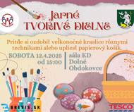 Kreatívny Bodok Vás srdečne pozýva už túto sobotu (12.4.2025) o 15. hod. na PRVÉ TOHTOROČNÉ TVORIVÉ DIELNE. Každá tvorivá duša si príde na svoje pri zdobení vajíčok veľkonočnými motívmi alebo pri pletení košíkov z papierových roliek. O občerstvenie je postarané a navyše bude pripravené PREKVAPENIE.