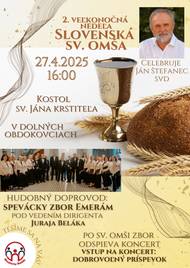 Kreatívny Bodok Vás srdečne pozýva na svätú omšu v slovenskom jazyku v nedeľu, 27. apríla o 16. hodine v Kostole sv. Jána Krstiteľa v Dolných Obdokovciach. Celú omšu bude svojím spevom doprevádzať nitriansky spevácky zbor Emerám, ktorý po omši odspieva ešte krátky koncert za dobrovoľný príspevok.