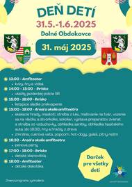 V dňoch od 31. 5 - 01.06.2025 sa uskutočnilo dvojdňové podujatie s názvom Deň detí v Dolných Obdokovciach. Deti čakal pestrý program ako kvízy, prednášky, ukážky, jazdnej polície, hasičov, nafukovacie hrady, maskoti, detský koncert a rôzne ďalšie atrakcie.