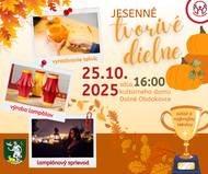 Občianske združenie Kreatívny Bodok Vás pozýva na jesenné tvorivé dielne, ktoré sa uskutočnia 25. októbra 2025, v sobotu o šestnástej hodine v kultúrnom dome.