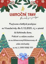 Milí spoluobčania, pozývame vás na tradičné Vianočné trhy v Dolných Orešanoch v Kultúrnom dome v piatok 5. decembra od 14,30 hod.
