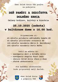 Spoločne si pripomenieme významné výročia našej obce aj osobností, ktoré sa s ňou spájajú. Uskutoční sa v sobotu 25.10.2025 o 16.00 hod. v kultúrnom dome.