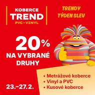 Před 24 dnyNabídka Koberce Trend HodonínProdejna Koberce Trend Hodonín vás zve na Trendy týden slev od 23. do 27. února. Získejte 20% slevu na vybrané metrážové koberce, vinyl, PVC i kusové koberce. Přijďte si vybrat výhodně – těšíme se na vás v prodejně Koberce Trend Hodonín, Brandlova 143 (naproti lázním).