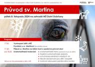 V pátek 8. listopadu 2024 od 17:00 hod. můžeme přivítat sv. Martina na bílém koni na zahradě MŠ v Dolních Dubňanech! Těšit se můžete na společný průvod obcí a samozřejmě svatomartinské hodování.