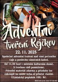 Na vědomí se dávají tato konání : - o víkendu 8.-9.11.2025 bude v čase 10,00-16,00 otevřen náš dolnoměstský kostelík - v neděli 9.11.2025 v 15,30 hodin zavítá do loukovského kostelíka pěvecký sbor TUCET s putovním kncertem - o hodinu později v neděli 9.11.2025 v 16,30 hodin zavítá pěvecký sbor TUCET s putovním kncertem do dolnoměstského kostelíka - v sobotu 15.11.2025 ve 14,00 se v hostinci U Muchů uskuteční beseda s dětským psychiatrem MUDr. J. Vrbou o aktuálních starostech dospívajících dětí - účast doporučujeme všem 😀 - LAMPIONOVÝ PRŮVOD - sobota 15.11.2025 v 17,00 hodin - POSVÍCENSKÁ ZÁBAVA - sobota 15.11.2025 ve 20,00 hodin - o víkendu 15.-16.11.2025 bude opět v čase 10,00-16,00 otevřen náš dolnoměstský kostelík