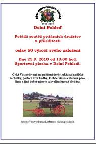 Dolní Pohleď pořádá soutěž požárních družstev u příležitosti oslav 50 výročí svého založení dne 25.9.2010 od 13:00 hod, sportovní plocha v Dolní Pohledi.