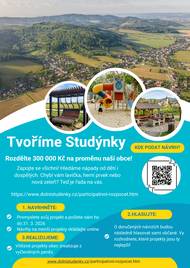 V naší obci žije spousta šikovných lidí s dobrými nápady, a proto letos poprvé otevíráme prostor právě vám! Spouštíme pilotní ročník projektu „Tvoříme Studýnky“. 💡 Je to náš úplně první společný pokus o participativní rozpočet. Chceme si vyzkoušet, co všechno dokážeme společně vymyslet a vylepšit. Na vaše nápady je v tomto prvním ročníku vyčleněno celkem 300 000 Kč. Možná to není částka na stavbu nové haly, ale o to nám ani nejde. Chceme se zaměřit na věci, které nám každý den dělají radost a zpříjemňují život v naší obci – nová lavička na vašem oblíbeném místě, herní prvek pro děti, o který si už dlouho říkají, nebo třeba nová zeleň a květiny, které rozjasní naše ulice. 🌸🪑 Jak se zapojit? 1️⃣ Vymyslete: Stačí i malý podnět, který zlepší okolí vašeho domu nebo oblíbenou trasu na procházku. Máte čas do 31. 3. 2026. 2️⃣ Sdílejte: Pošlete nám svůj nápad přes jednoduchý online formulář. 3️⃣ Rozhodněte: Sami pak v hlasování vyberete ty nápady, které obec z vyčleněných peněz zrealizuje. Každý nápad se počítá a my se moc těšíme na vaši odvahu a kreativitu! Pojďme do toho poprvé společně. ❤️ 👉 Všechny informace a formulář pro váš nápad najdete zde: 🔗 https://www.dolnistudenky.cz/participativni-rozpocet.htm
