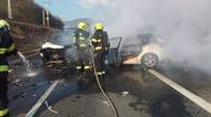 Po nehodě u Dolních Zálezel začala hořet dvě osobní auta