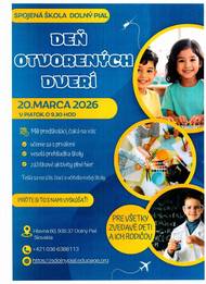 Deň otvorených dverí v Spojenej škole Dolný Pial, dňa 20.marca 2026 o 9:30 hod. Bližšie informácie v priloženom súbore