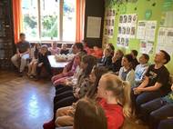 Na návštěvu k nám přijela paní spisovatelka Michaela Fišarová. Děti se tak seznámily s "doopravdickou" paní spisovatelkou, která moc ráda píše knihy pro děti a moc ráda o svých knihách vypráví. Děti při poslechu napínavých příběhů ani nedutaly a nejraději by si knihu hned odnesly domů ke čtení.