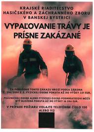 Okresné riaditeľstvo Hasičského a záchranného zboru v Banskej Bystrici upozorňuje na nárast požiarov trávy a ich negatívny dopad na majetok. Žiada o rešpektovanie zákazu vypaľovania suchej trávy pri práci v záhradách a v prírodnom prostredí.