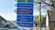 Přespolní řidič přijíždí po vedlejší silnici ke křižovatce s hlavním tahem na Prahu. Není úplně orientovaný, ale věří, že mu pomohou rozcestníky u křižovatky. A pak uvidí tohle.