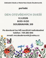 MŠ Doubravník pořádá Den otevřených dveří 11. března od 8 do11 hodin.