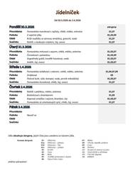 Jídelníček základní školy platný v týdnu od 30.3. do 2.4.2026. V pátek 3.4.2026 se nevaří: