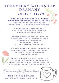 Přijďte si odpočinout, zpomalit a něco krásného vytvořit vlastníma rukama. Kulturní spolek Drahany vás zve na keramický workshop, kde si vyzkoušíte práci s hlínou pomocí mačkané techniky a vytvoříte si vlastní hrníček nebo mističku. Workshop je vhodný i pro úplné začátečníky – stačí chuť tvořit.