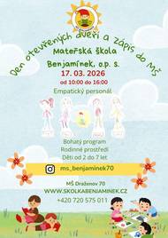 17. 3. 2026 od 10.00 hod do 16.00 hod MŠ Benjamínek,o.p.s., Draženov 70
