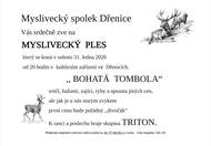 Myslivecký spolek Dřenice, Vás srdečně zve na "Myslivecký ples", který se koná v sobotu 31.ledna 2026 od 20hod v kulturním zařízení ve Dřenicích. bohatá tombola k tanci a poslechu hraje skupina TRITON předprodej vstupenek a rezervace stolů je možný na tel. 777 902 851 - p.Lorenc cena vstupenky 250kč