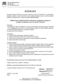 Starostka městyse Troskotovice vyhlašuje konkurz na pracovní místo ředitele/ředitelky Základní škola a Mateřská škola Troskotovice, příspěvková organizace se sídlem Troskotovice 160, 671 78, IČO 71011285