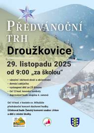 Zveme Vás na tradiční Předvánoční trh, letos se bude konat zítra 29.11.2025 za bývalou školou od 09:00 hod. K poslechu bude hrát kapela 4. cenová a můžete si u toho pochutnat na zabijačkových pochutinách a dalších dobrotách. Od 14:00 bude v místním kostele Předvánoční koncert. Účinkovat bude Ženský komorní soubor Jirkov a děti z místní školky.