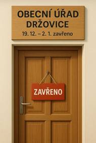 Upozorňujeme občany, že obecní úřad Držovice bude během vánočních svátků uzavřen v termínu: ???? 19. 12. 2025 – 2. 1. 2026