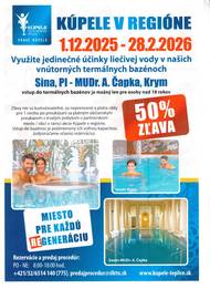 Aj tento rok sa naša obec Dubodiel zapojila do projektu „Kúpele v regióne“, ktorý sa bude konať od 1.decembra 2025 do 28.februára 2026. Občanom, ktorí navštívia kúpele v Trenčianskych Tepliciach bude poskytnutá 50 % zľava z cien vstupov do termálnych bazénov SINA, PI (bazén MUDr.Čapka) a KRYM.