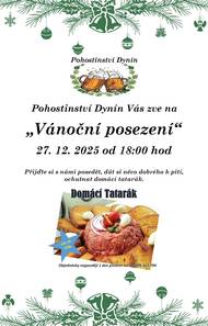 Pohostinství Dynín vás zve na Vánoční posezení v hospodě s tatarákem. Sobota 27. 12. 2025 od 18:00 hodin. Přijďte si posedět, dát něco dobrého k pití a ochutnat domácí tatarák.