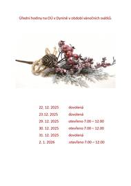 Úřední hodiny na OÚ v Dyníně v období vánočních svátků.