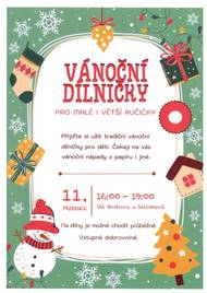 Přijďte si užít tradiční vánoční dílničky, které se konají ve čtvrtek 11. prosince od 16:00 - 19:00hod v sálu Hostince u Salcmanů.