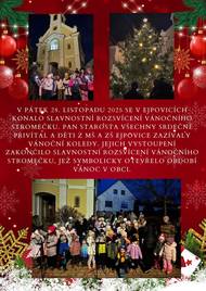 V pátek 28. listopadu 2025 se v Ejpovicích konalo slavnostní rozsvícení vánočního stromečku. Pan starosta srdečně přivítal všechny přítomné a děti z MŠ a ZŠ Ejpovice zazpívaly vánoční koledy. Jejich vystoupení zakončilo slavnostní rozsvícení vánočního stromečku, jež symbolicky otevřelo období Vánoc