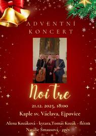 Obec Ejpovice srdečně zve na adventní koncert hudebního tria NoiTre, který se uskuteční 21. prosince 2025 od 18:00 v Kapli sv. Václava v Ejpovicích.