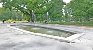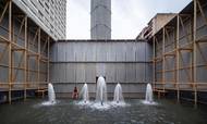 V Londýně postavili žebrovanou svítivě žlutozelenou fontánu z umělého kamene